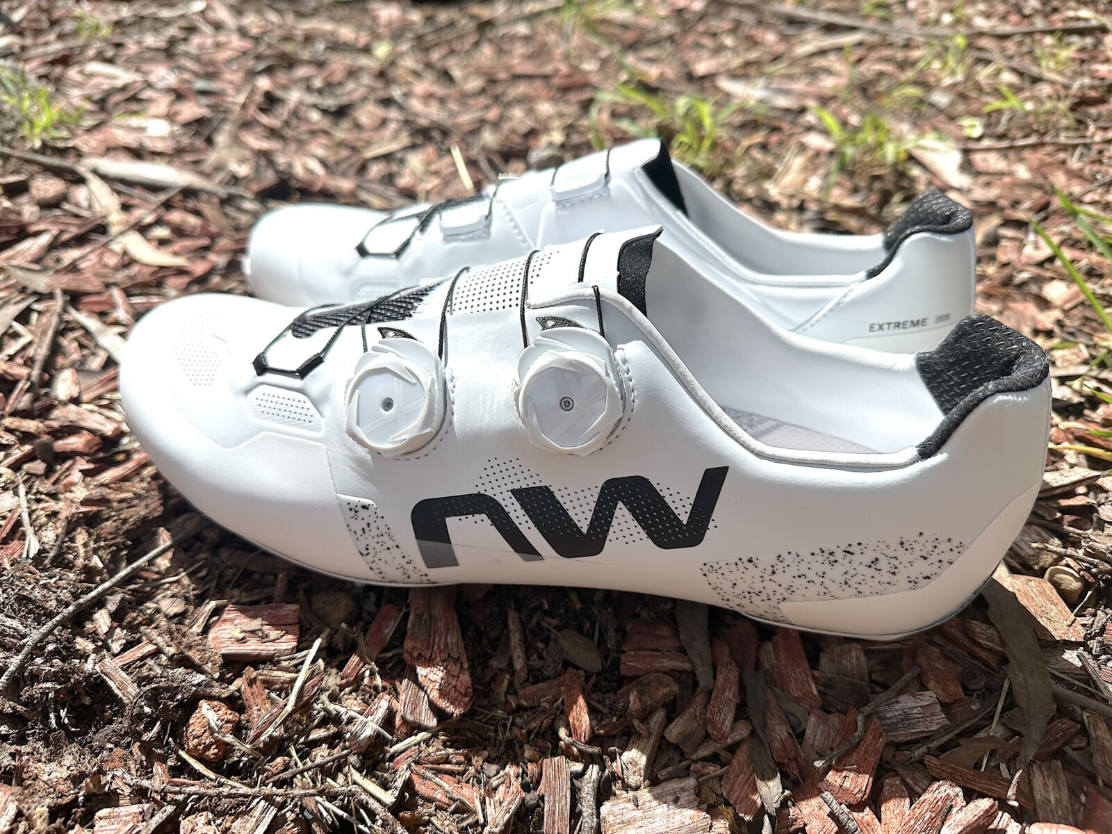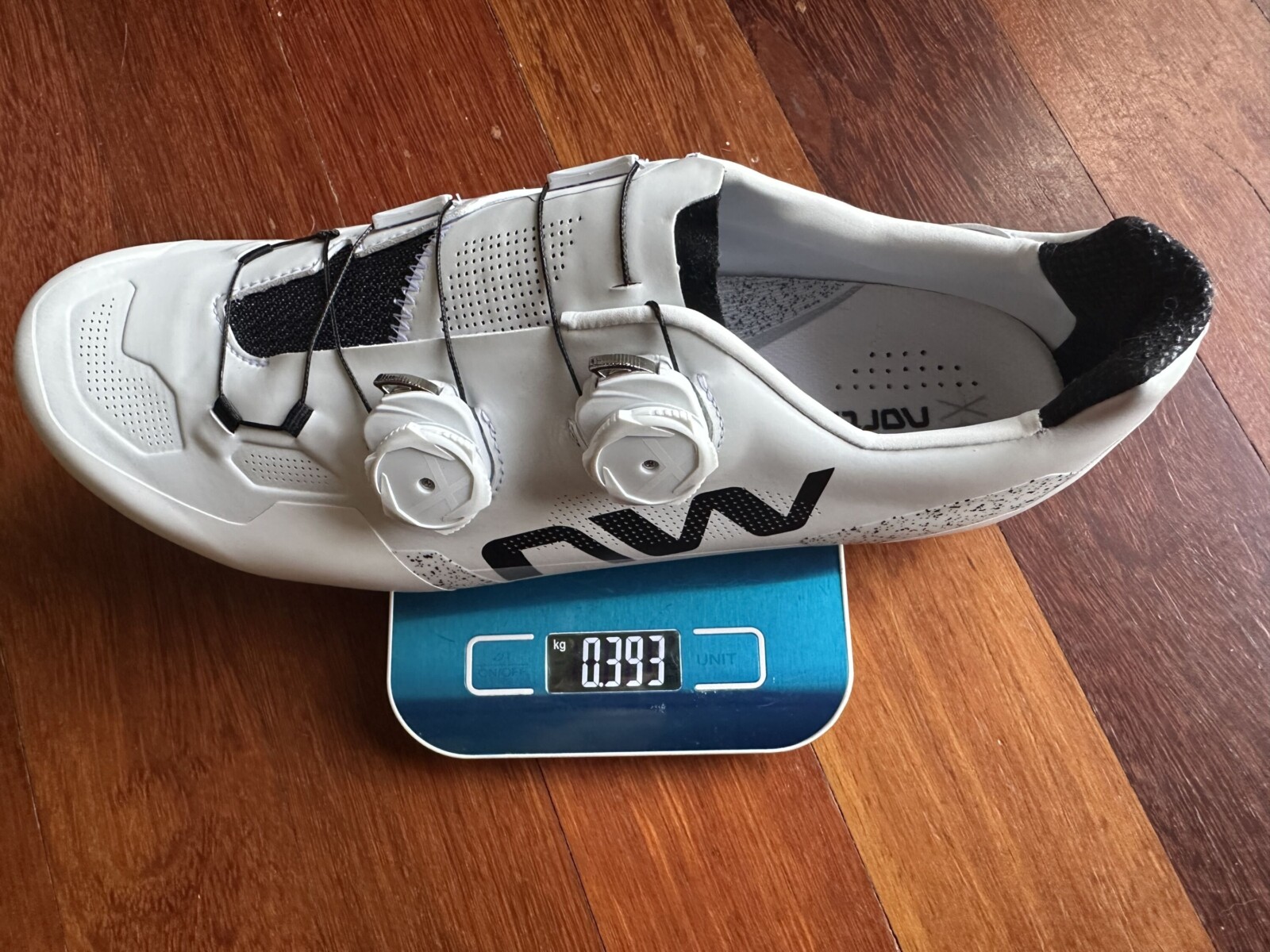 Entirely unsurprisingly given the construction features obvious reinforcing in multiple places the Extreme X weighs a little more—tipping the scales at around 390 grams per shoe—but in my experience Northwave has never been especially weight obsessed.