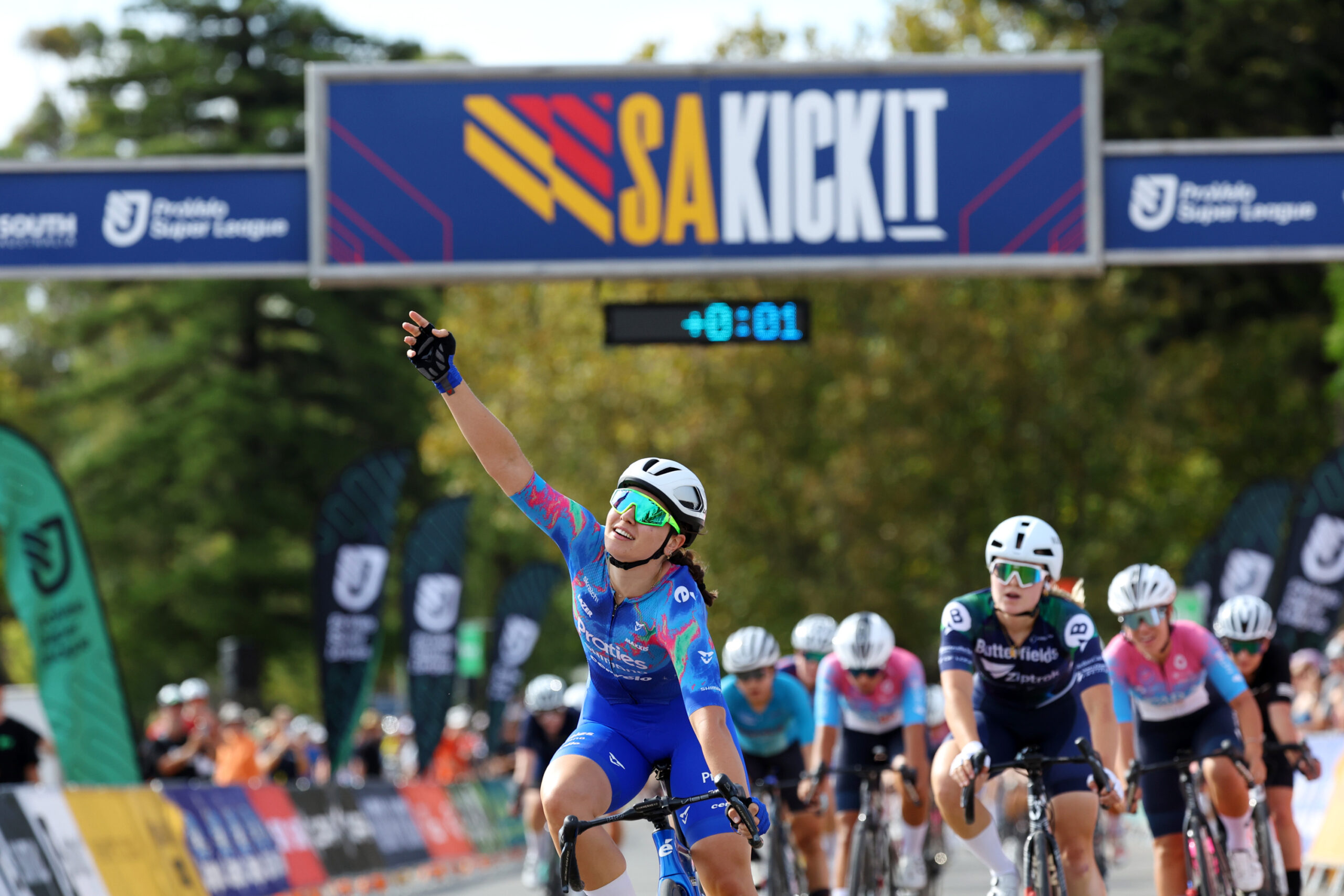 Talia Appleton (Praties Cycling Team) extended her General Classification lead to five seconds over Katelyn Nicholson (Butterfields Racing Team) after securing crucial bonus seconds early in the SBS Women’s League, while her teammate Sophie Marr capitalised on a perfect lead-out to outsprint Odette Lynch (Butterfields Ziptrak) for a comfortable stage win. In the Men’s League, Team Brennan controlled the race to set up Blake Agnoletto for a sprint victory over Graeme Frislie (CCACHE BODYWRAP) and propelled Jack Ward into the GC lead.