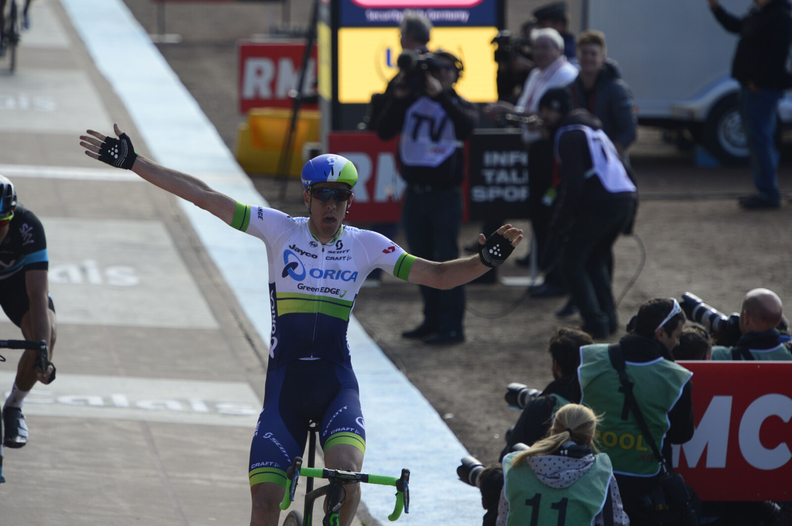 Emerging into the velodrome Hayman, not known for his sprinting prowess, was able to time his sprint to perfection, and hold off four-time Paris-Roubaix winner Tom Boonen to cross the line as victor by a solitary bike length.