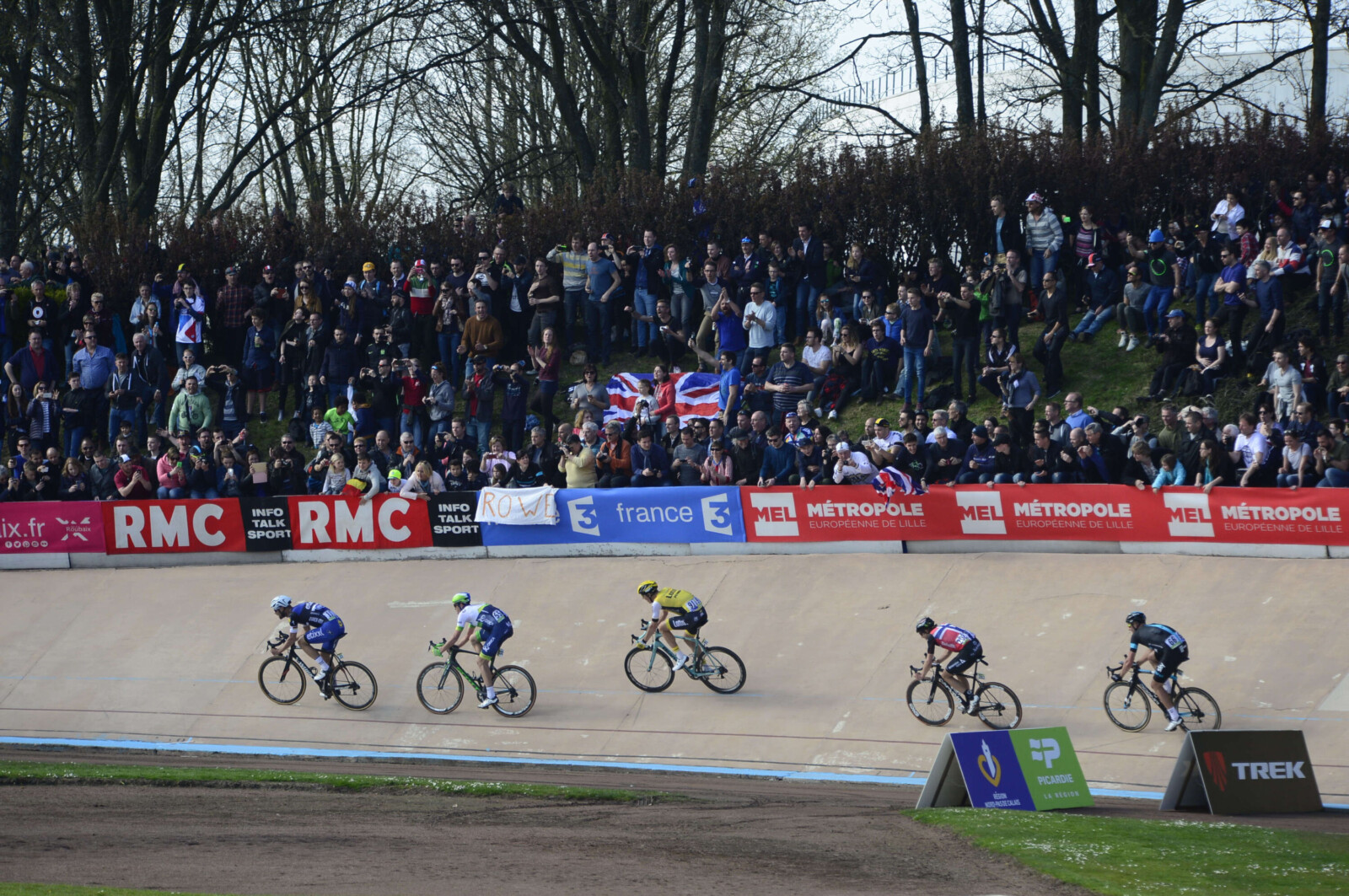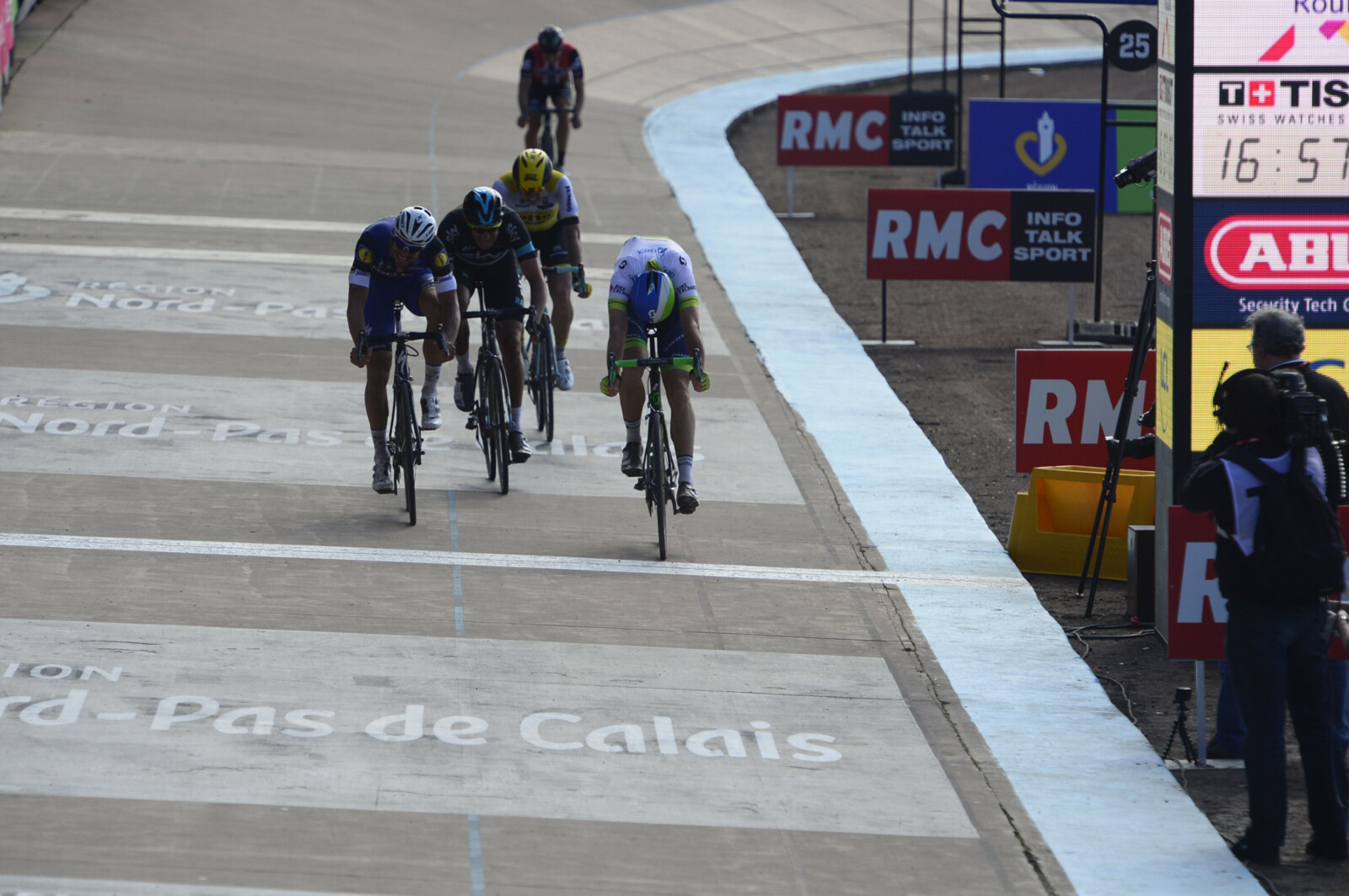 Soon after, Cancellara was making the chase but fell heavily on the cobbles, 46km from the finish at the famous Roubaix Velodrome.